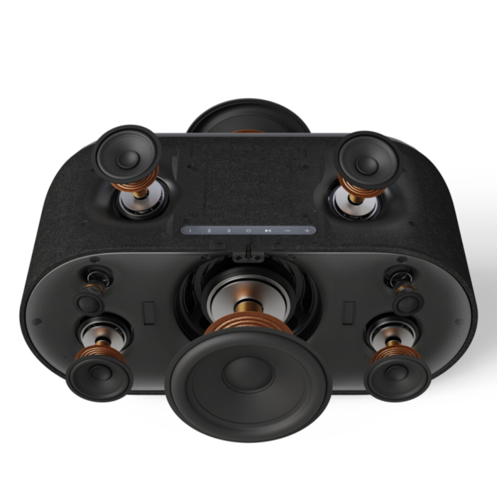 Použite vstavaný ekvalizér na úpravu basov, výšok a umiestnenia, aby hudba znela vyvážene a prirodzene bez ohľadu na to, kam reproduktor umiestnite.