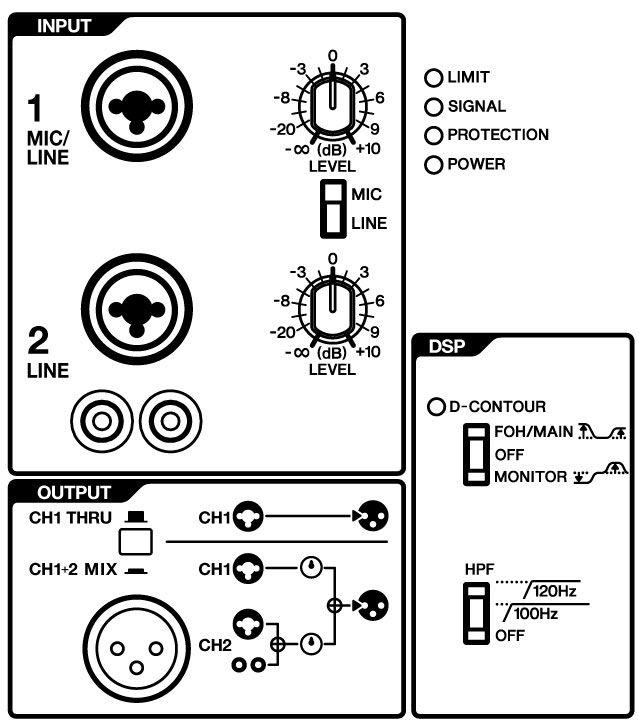 Má zabudovaný ľahko ovládateľný dvojkanálový mixér 1x Combo vstup pre prvý kanál, 1x Combo vstup + 2x RCA konektor pre druhý kanál, 1x XLR3-32 výstup a chladí sa pomocou ventilátora.