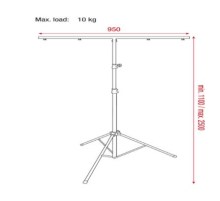 Stojan na svetlo obsahuje 95 cm T-Bar a unesie celkovú záťaž 10 kg. Stojan sa dá vysunúť až na 250 cm pomocou 2-dielnych teleskopických trubíc.